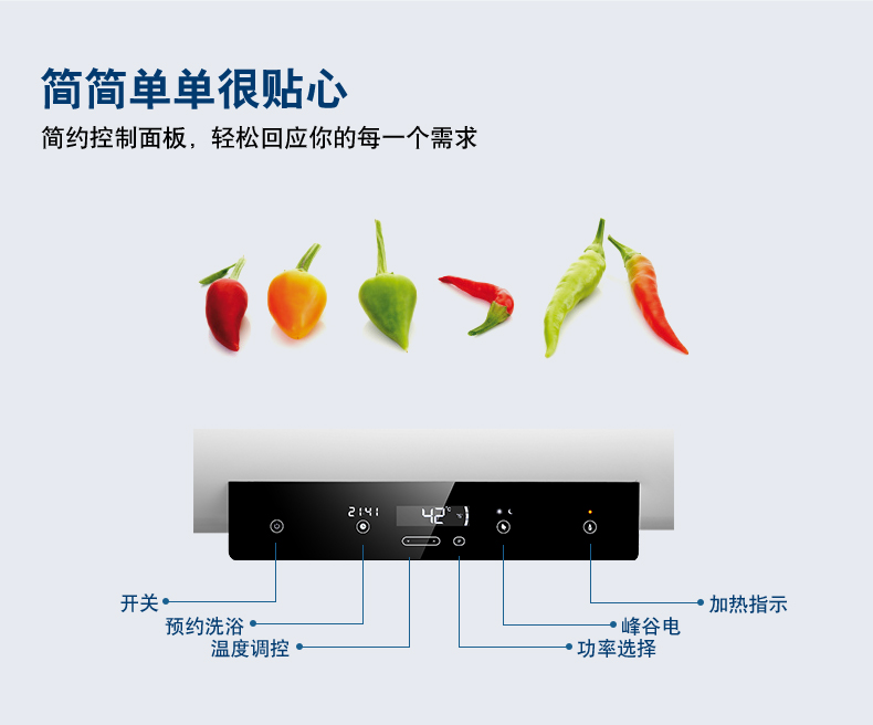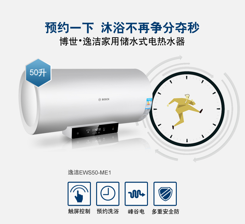 電子式控制,觸摸按鍵??蛇x容積為50L/60L/80L。