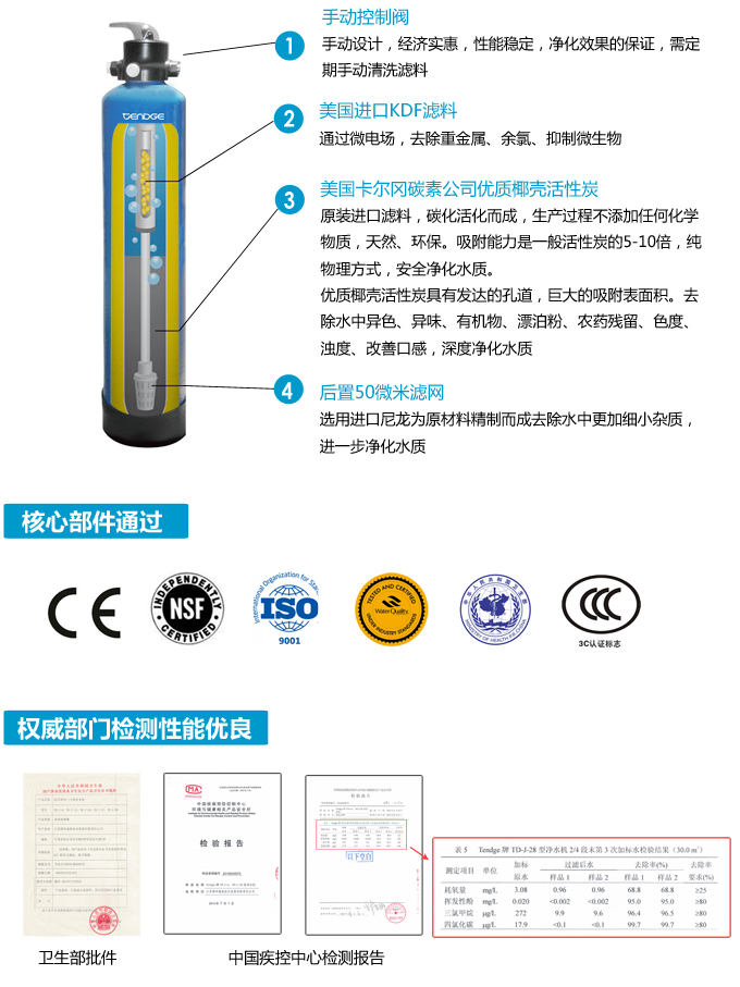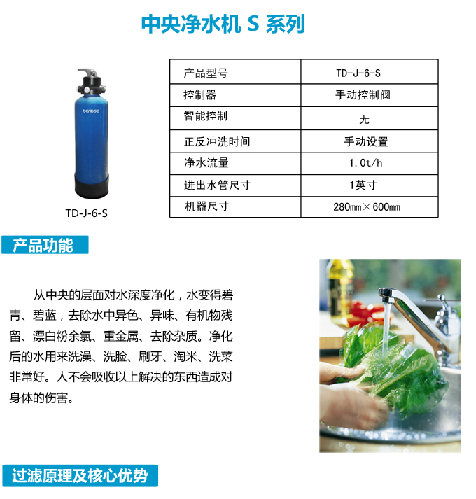 手動中央凈水機有效去除水中的異色、異味;進一步濾除水中微小雜質(zhì)、膠狀體;去除水中的漂白粉余氯、農(nóng)藥、重金屬;保留對人體有益的礦物質(zhì)。使水變得碧清、碧藍,去除對人體有害的物質(zhì)。